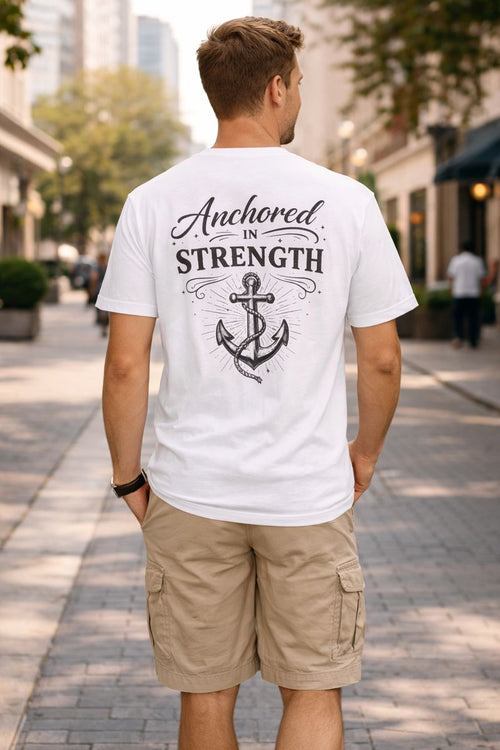Anchored in Strength Christian T-Shirt | Faith-Based Anchor Cross Graphic Tee | Inspirational Christian Apparel | Faith & Home Co